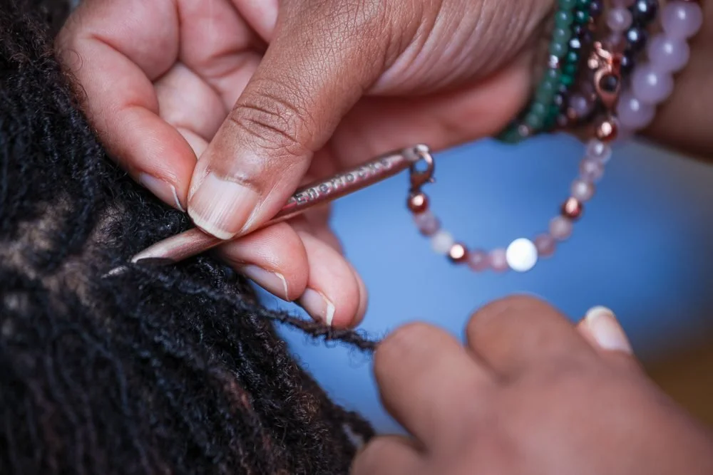 The Enerlocks locking tool’s intentional and streamlined design reduces tension often experienced at the client’s hair root during loc establishment, maintenance, and repair appointments. Its smooth, polished finish and mild weight makes it easier for you to use on your clients while enhancing their experience with you. The accompanying gemstone bracelet and extender tool accessory, when attached to the wrist, saves you time during loc appointments. It reduces the risk of dropping the tool and needing to clean and disinfect it during your appointments.